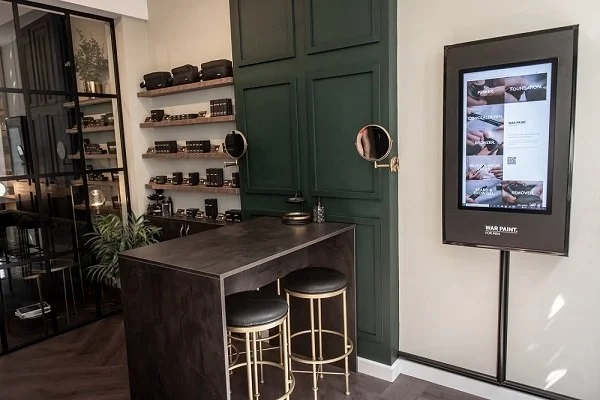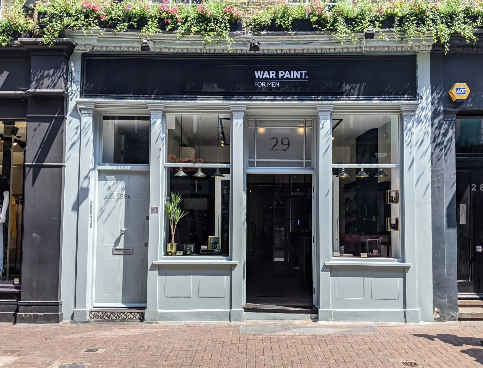 War Paint for Men is about making men feel good about themselves despite scars and pimples. The brief for the this flagship store was to make it look inviting to men. By incorporating a barber’s at the back the whole experience was about making them feel human. This successful client loved everything about it and it’s still going strong in Carnaby St.